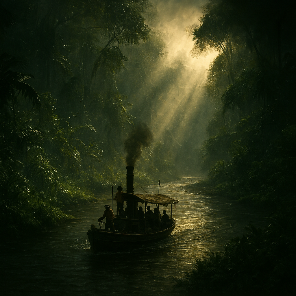 El río, de tintes azabache, serpenteaba, entre imposibles muros de exuberante vegetación. Ocultando su profundidad y peligros.